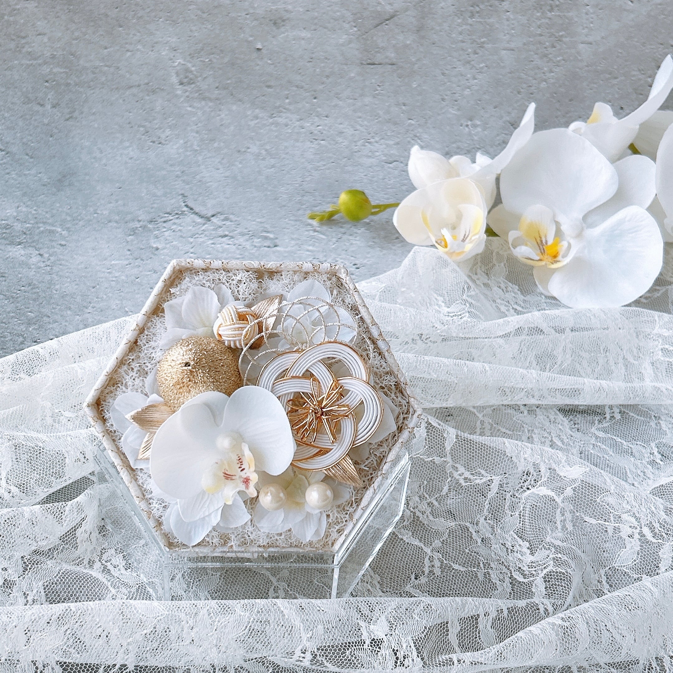 【永遠に凛と美しく】リングピロー『ホワイト』/和風 ウェディング 結婚式 和装婚 ブライダル 六角形 和